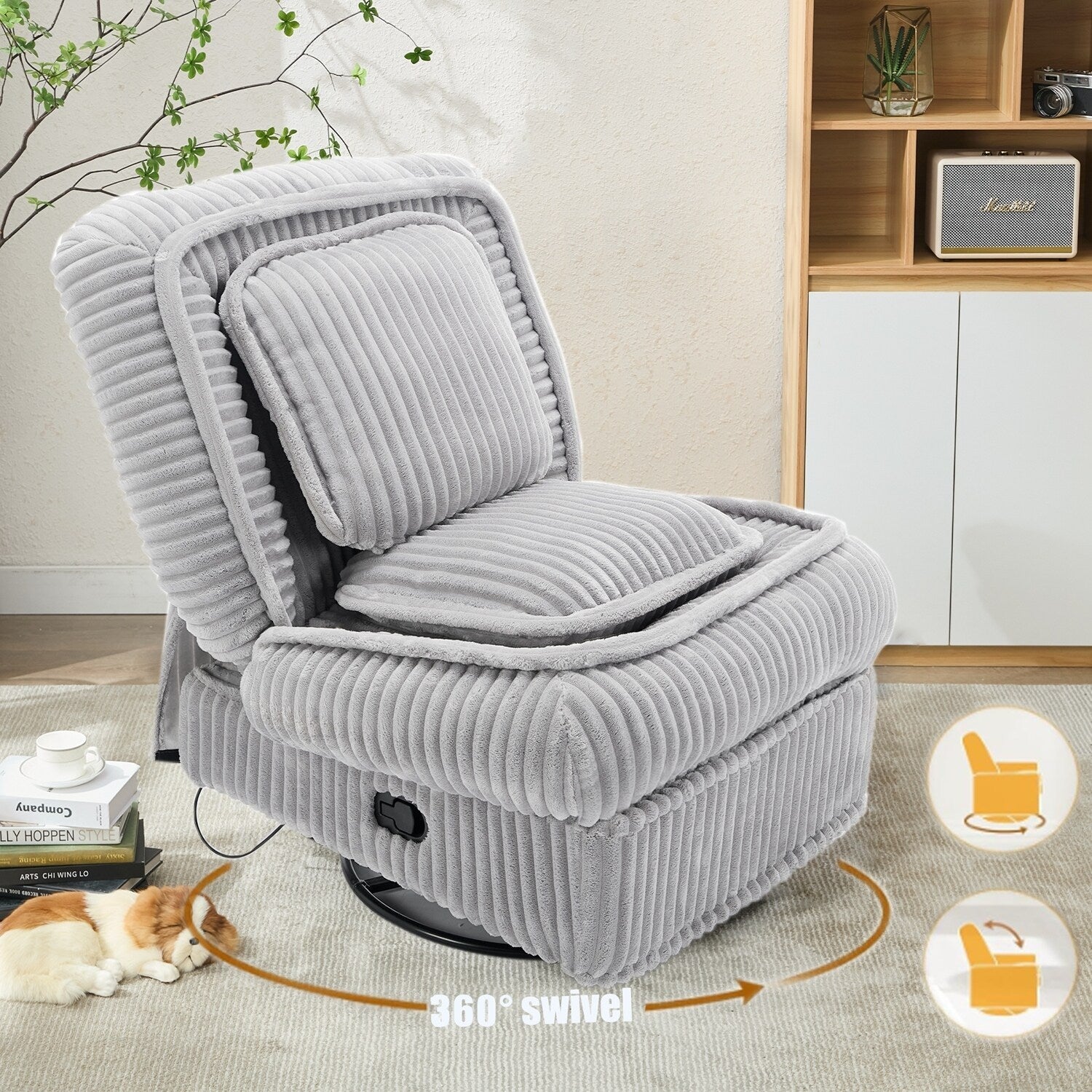 This recliner sofa is a game-changer for your relaxation needs. It offers a seamless blend of comfort and functionality. The 360° swivel and rocking feature allows you to enjoy a dynamic seating experience. The adjustable backrest and footrest let you customize your position for ultimate relaxation, whether you're reading, watching TV, or simply unwinding. The included pillows add an extra layer of coziness. It's perfect for any room in your home, providing a haven of comfort and style.?