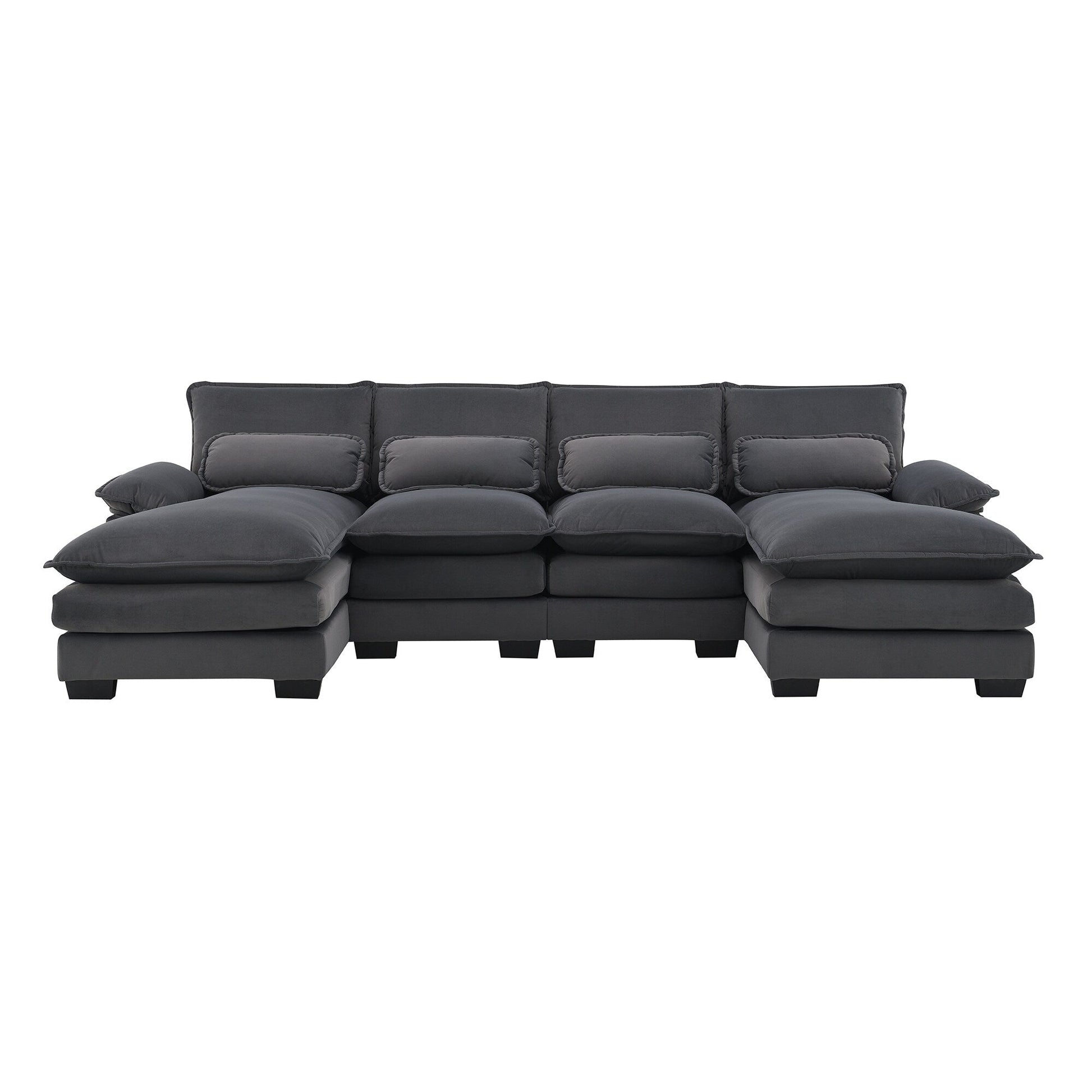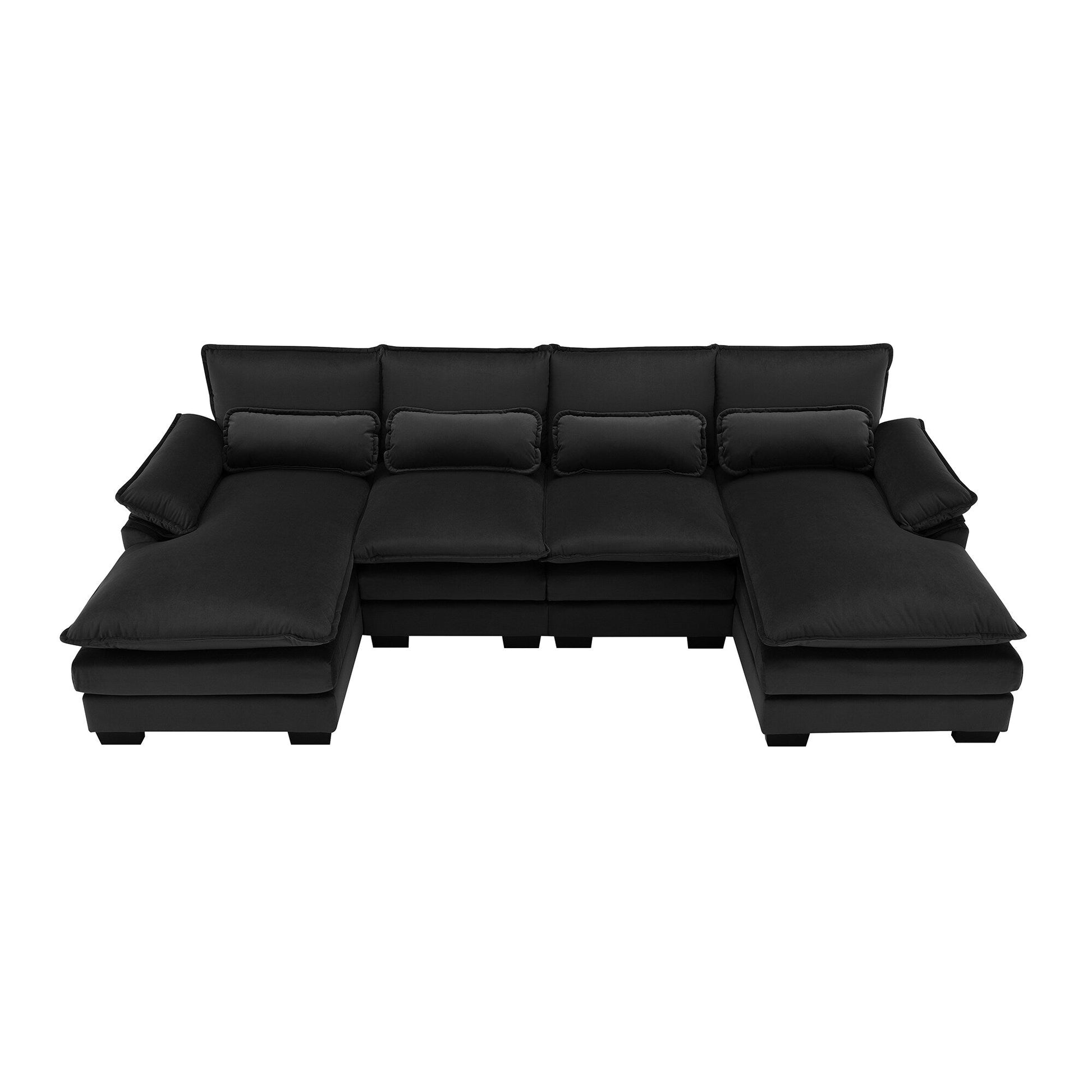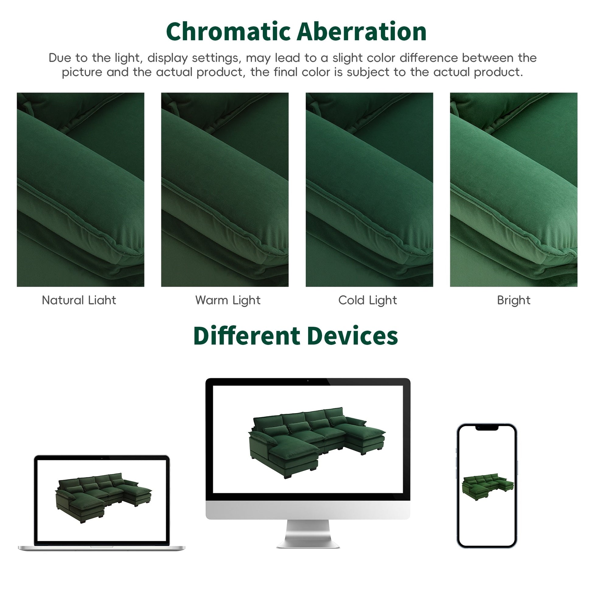 Double chaise lounge: It can relax our head, neck, back and all parts of the body, making it more comfortable than traditional sofas. Double cushion: Provide a softer and more comfortable wrap-around feeling.The top cushion is filled with pure high density foam for a softer feeling,the lower cushion is filled with pocket springs with high density foam for better support. High-Quality: The sofa features a sturdy wood and iron frame that can hold up to 330 lbs, making it unencumbered for everyday use. It is also equipped with solid wood legs, which are stable and durable, not easy to scratch the floor. Comfortable design: The white sofa is made of high-quality chenille, which is soft, comfortable and durable.Armrest pockets on both sides of the sofa can relax your head, and there are also 4 lumbar pillows to give better lumbar support, making it easy to adjust your posture and reduce discomfort and fatigue. Stylish Style: The upholstery and sleek lines blend make this combination sofa beautiful and comfortable, perfect for your apartment, house or conference room. This U-shaped Modular sofa is suitable for any indoor environment, embracing your friends and giving a comfortable and cozy feeling!