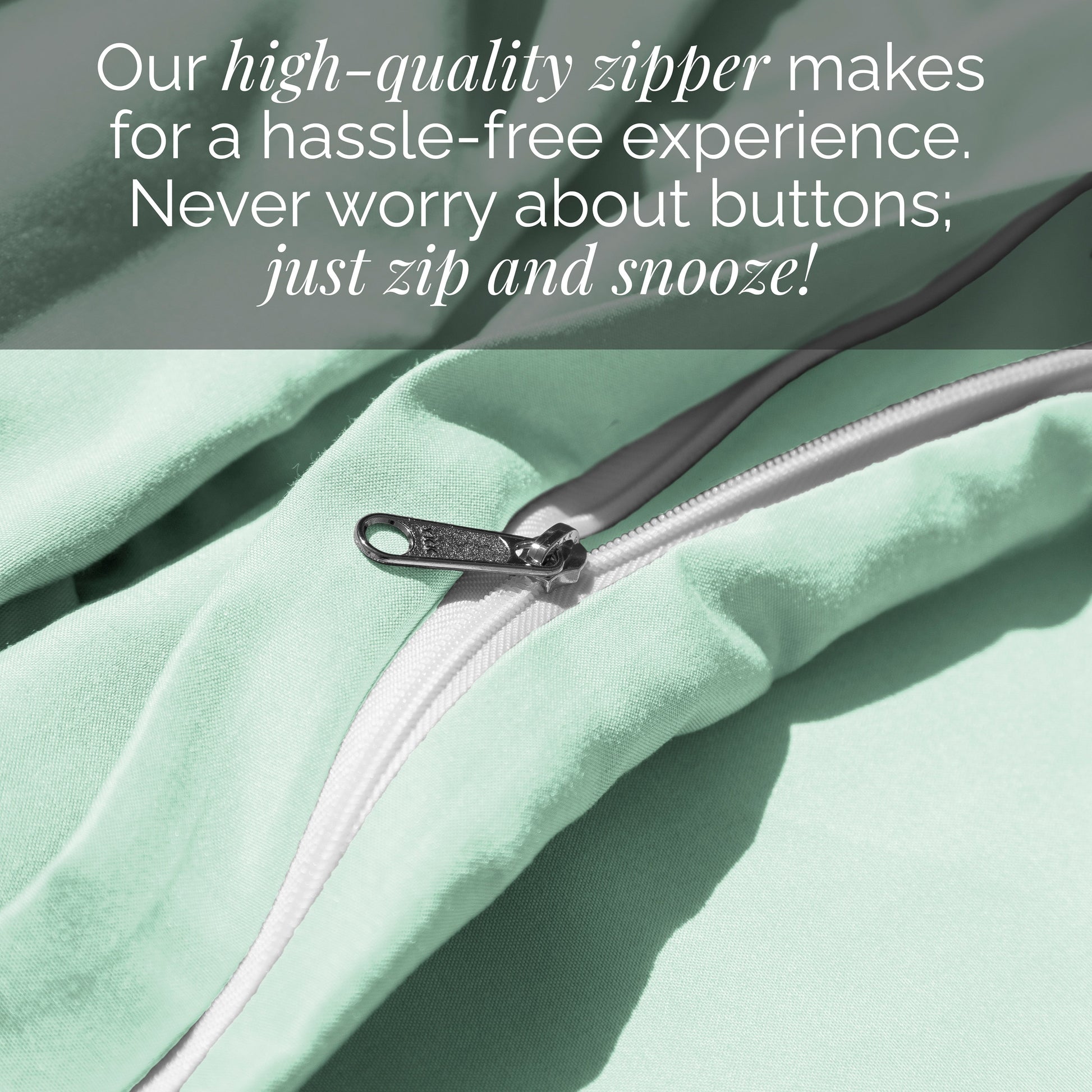 Available in a variety of popular shades to match your decor, this set is available as a blue duvet cover, sage green duvet cover, dark taupe duvet cover, and black duvet cover queen size and other sizes. And if you’re after that classic crisp look, our off white duvet cover king or white duvet cover queen size set is a timeless choice. You can also choose from our other color options!