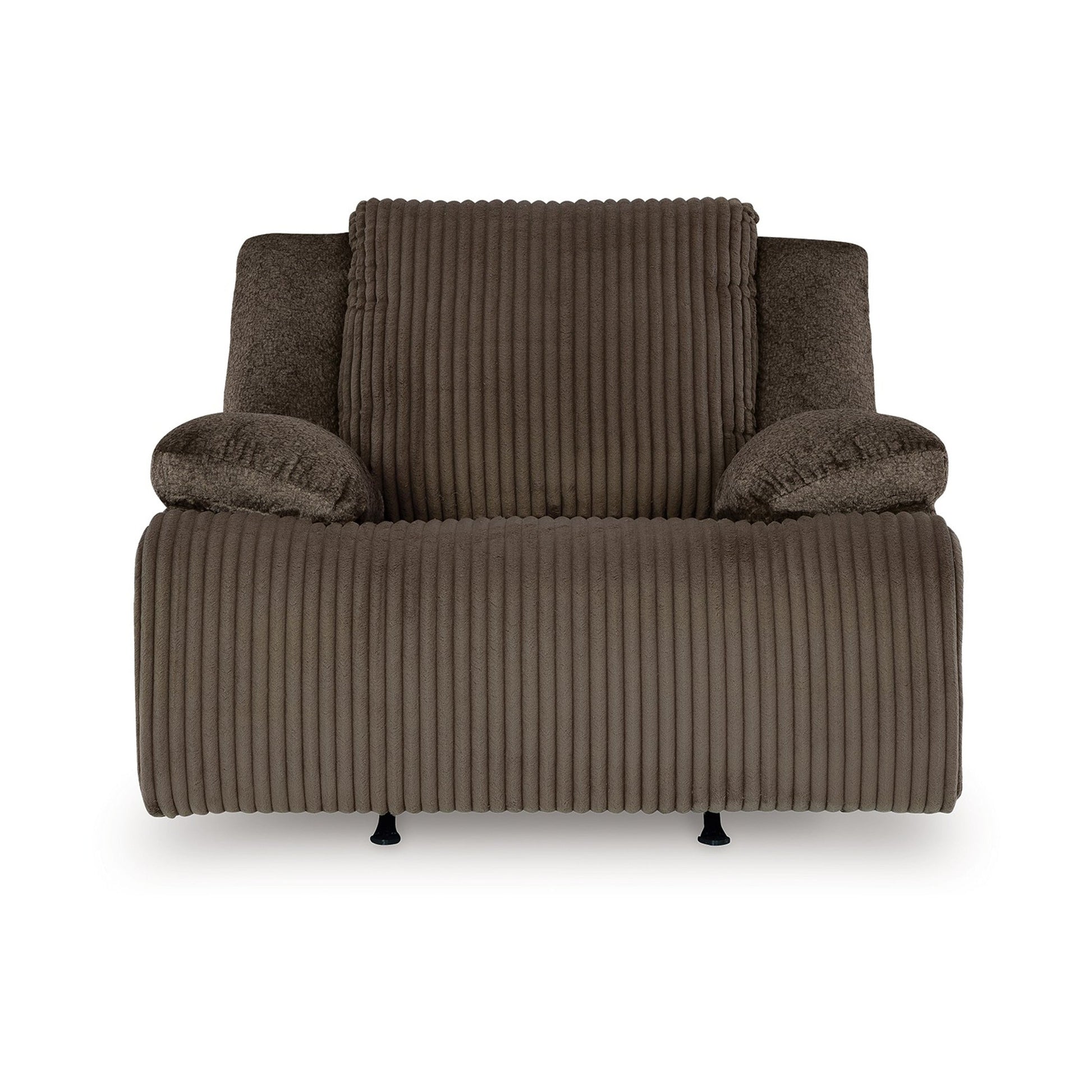 Indulge in ultimate relaxation with this rocker recliner chair, designed for those who value both style and comfort. Its sturdy corner-blocked frame with metal reinforcement ensures durability, while the luxurious chocolate brown polyester upholstery and cozy corduroy cushions deliver a soft, inviting feel. Check out our Vincent collection for more options.