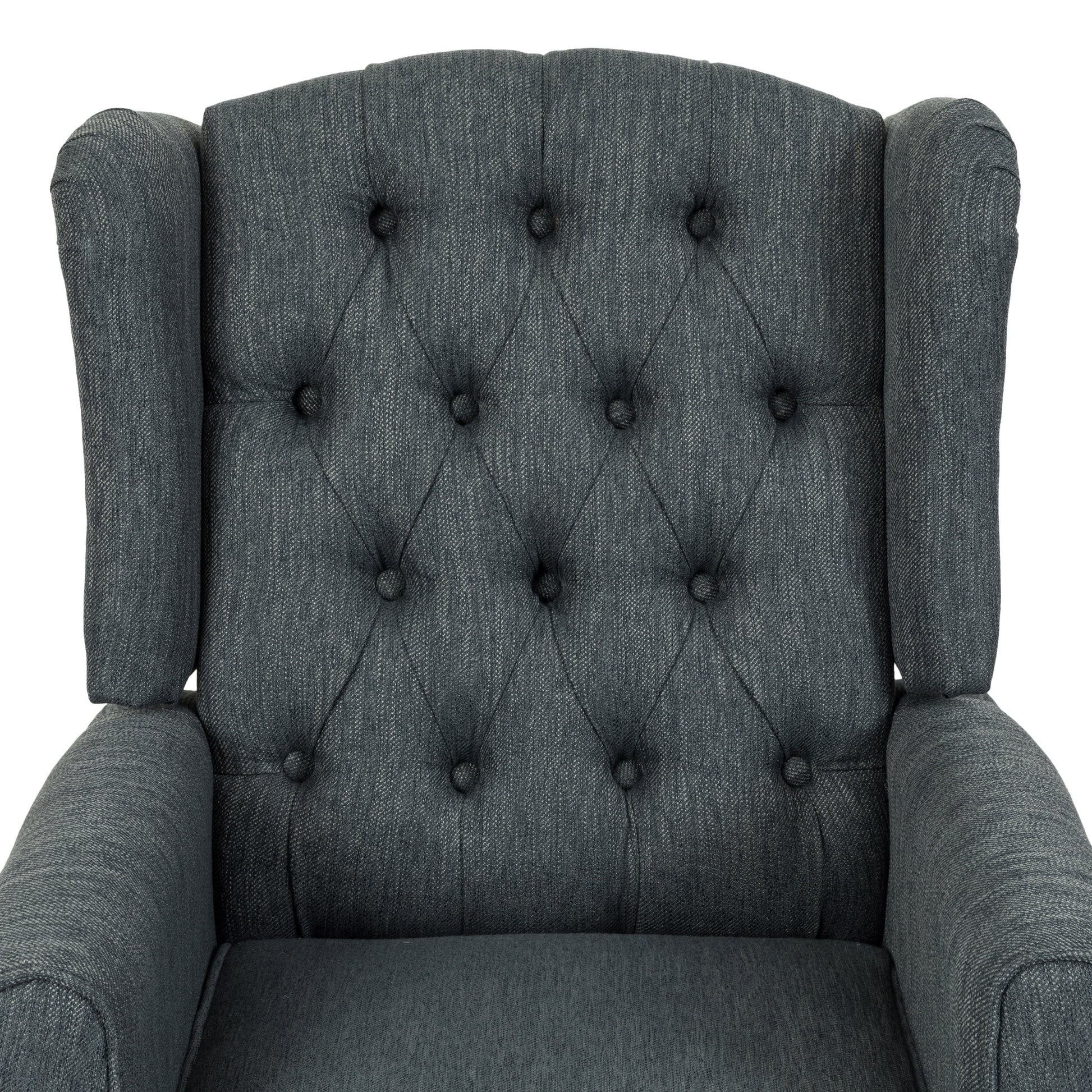 Update your living room decor with an attractive and functional furniture piece with the Wellscross push-back recliner from Christopher Knight Home. Button tufting and refined polyester upholstery give the chair a classic appearance, while manual and push-back recline features let you stretch out and relax. A semi-firm seat provides support, and a winged frame traps heat and blocks out drafts for a warm and comfortable seating experience. Birchwood legs finished in brown create a subtle contrast with the upholstery while keeping the chair stable.