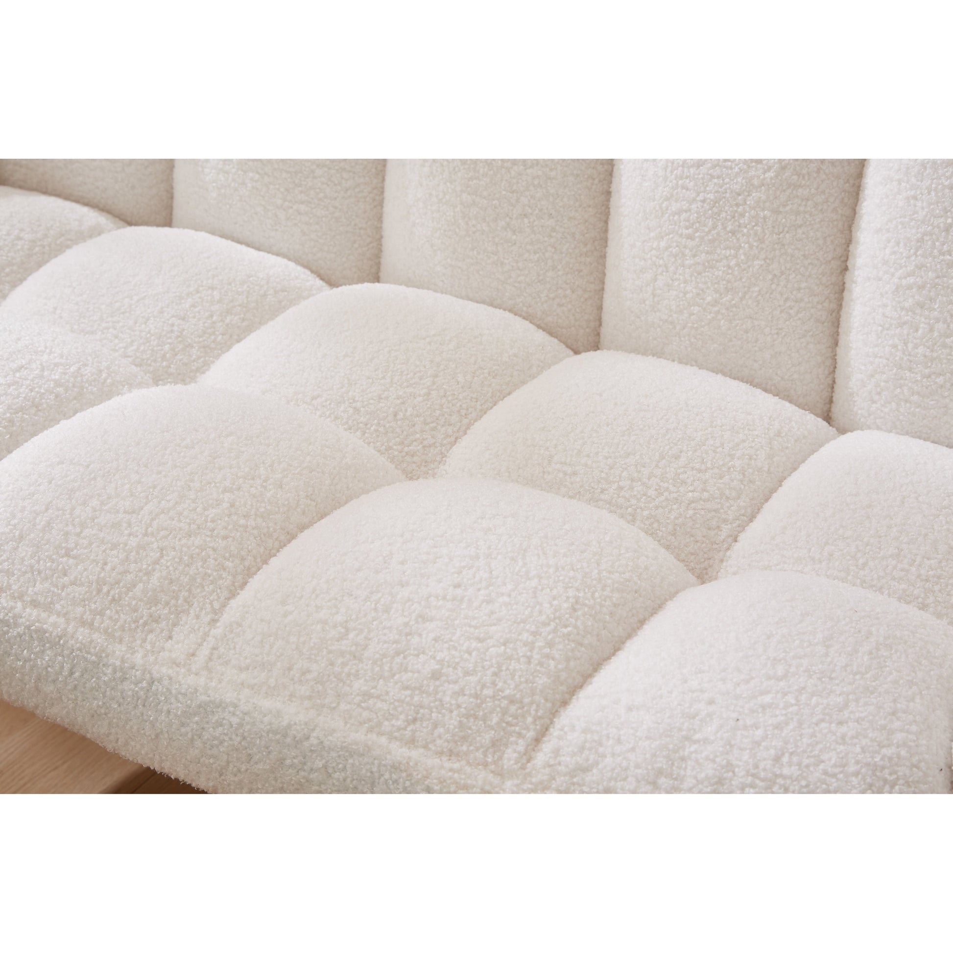 White 52 Teddy Loveseat Sofa with Quilting Backs and Hardwood Frame for Living Room.