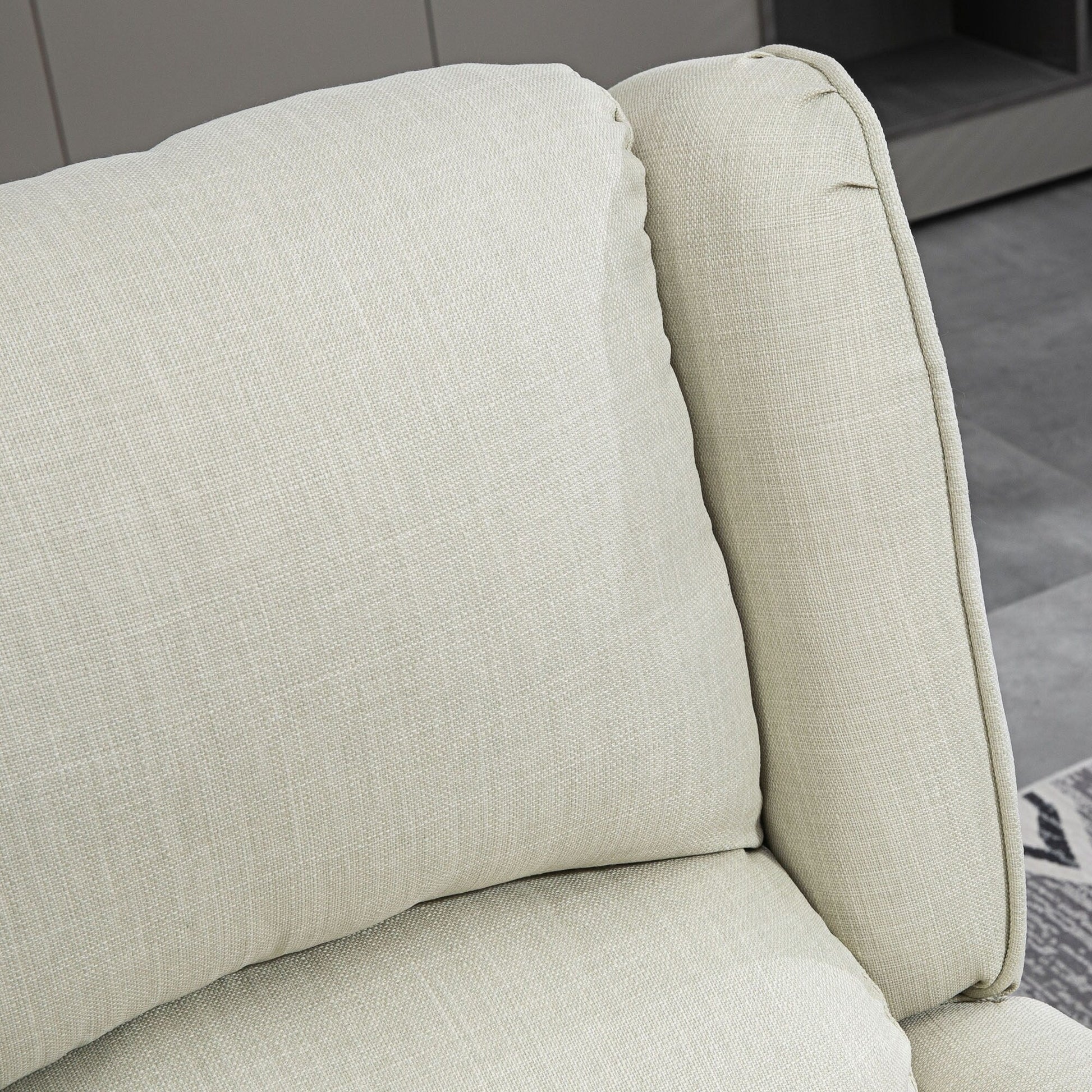 Comfort and Support: Upholstered in breathable linen fabric with extra high-density foam padding and a pocket spring system, our recliner sofa provides exceptional comfort, stretch, and bounce for relaxation. The wingback design with round armrests and wood legs adds an elegant touch, while the steel frame and wood legs ensure stability.