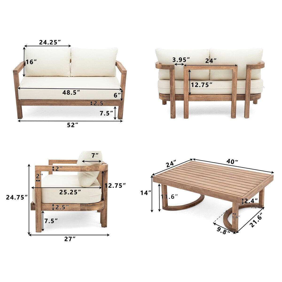 DIMENSIONS: Choose an accessory that is the perfect size for you and your furniture. Each chair is 27.75' W x 27.00' D x 30.75' H, Loveseat is 52.00' W x 27.00' D x 30.75' H, and coffee table is 40.00' W x 24.00' D x 14.00' H. You will love how much your space can transform with the simple addition of this charming chat set.