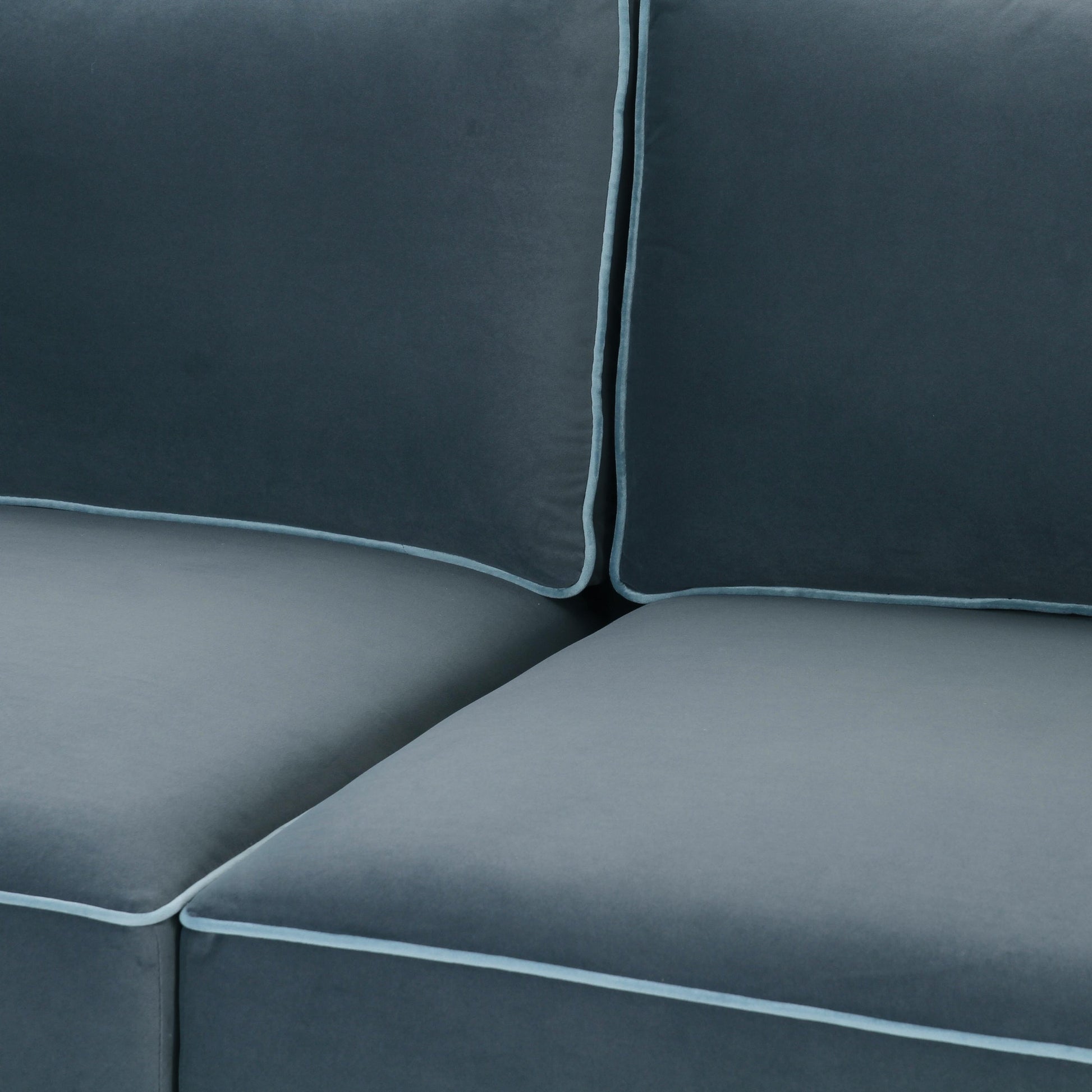 Velvet upholstery; Available in taupe, charcoal, and navy velvet