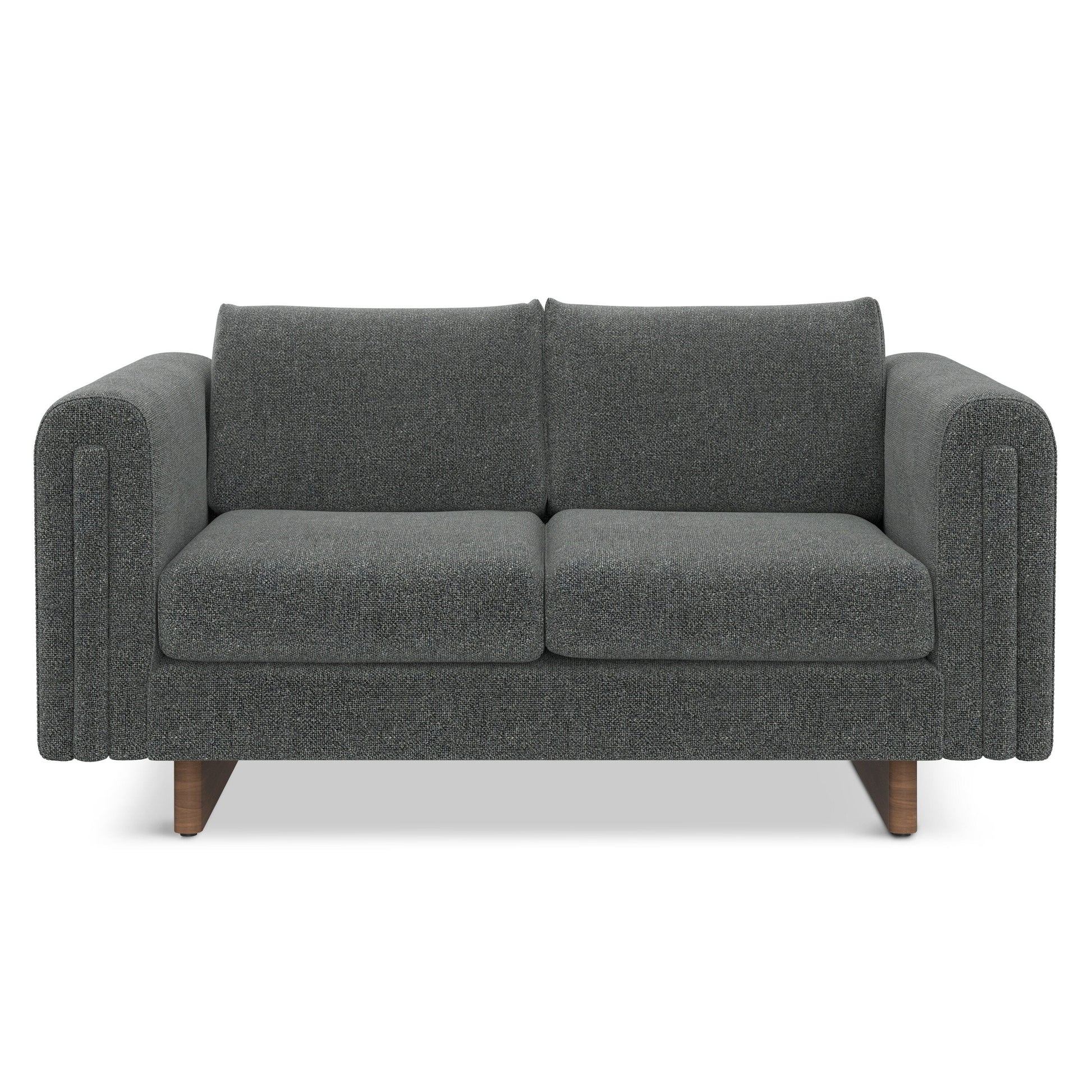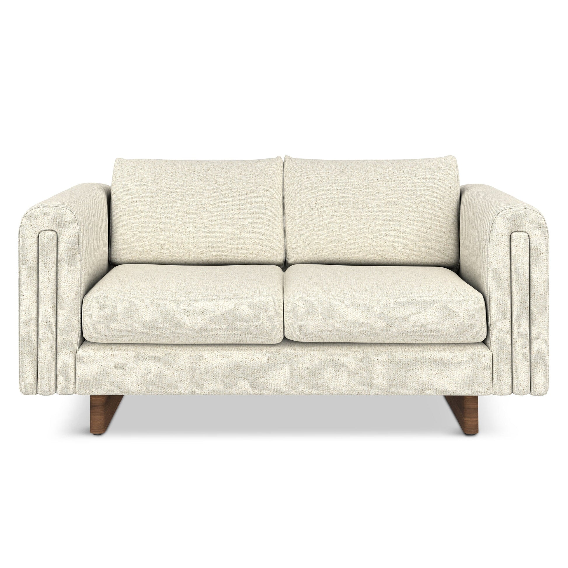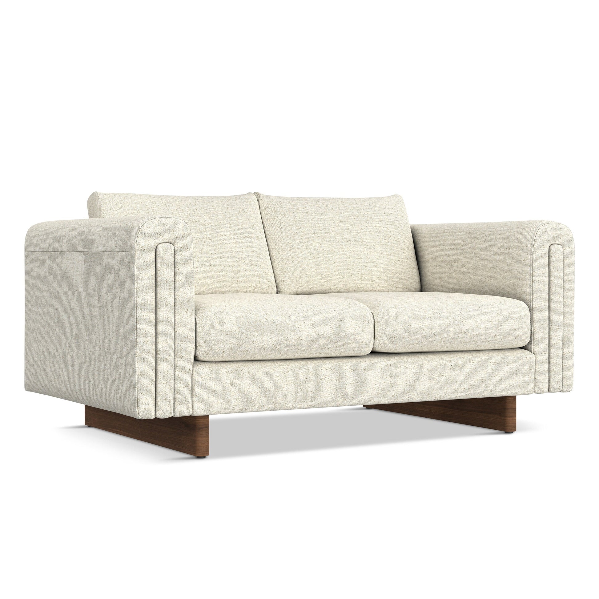 Handcrafted, contemporary loveseat measures 61' W x 38' D x 30' H and supports up to 600 lbs, ideal for compact living spaces or small apartments