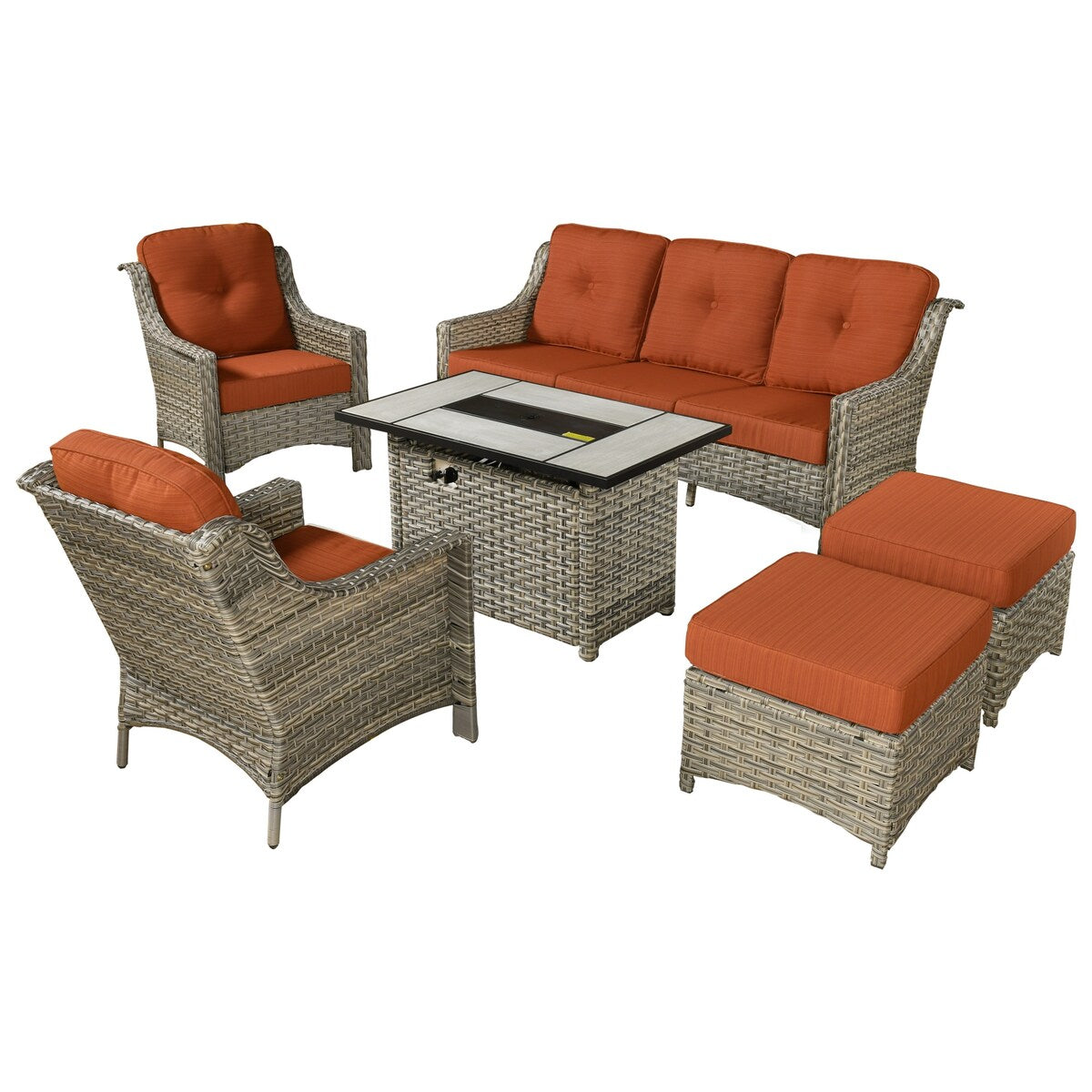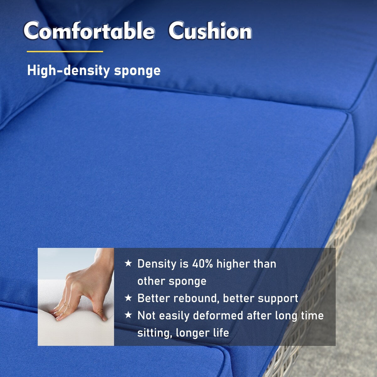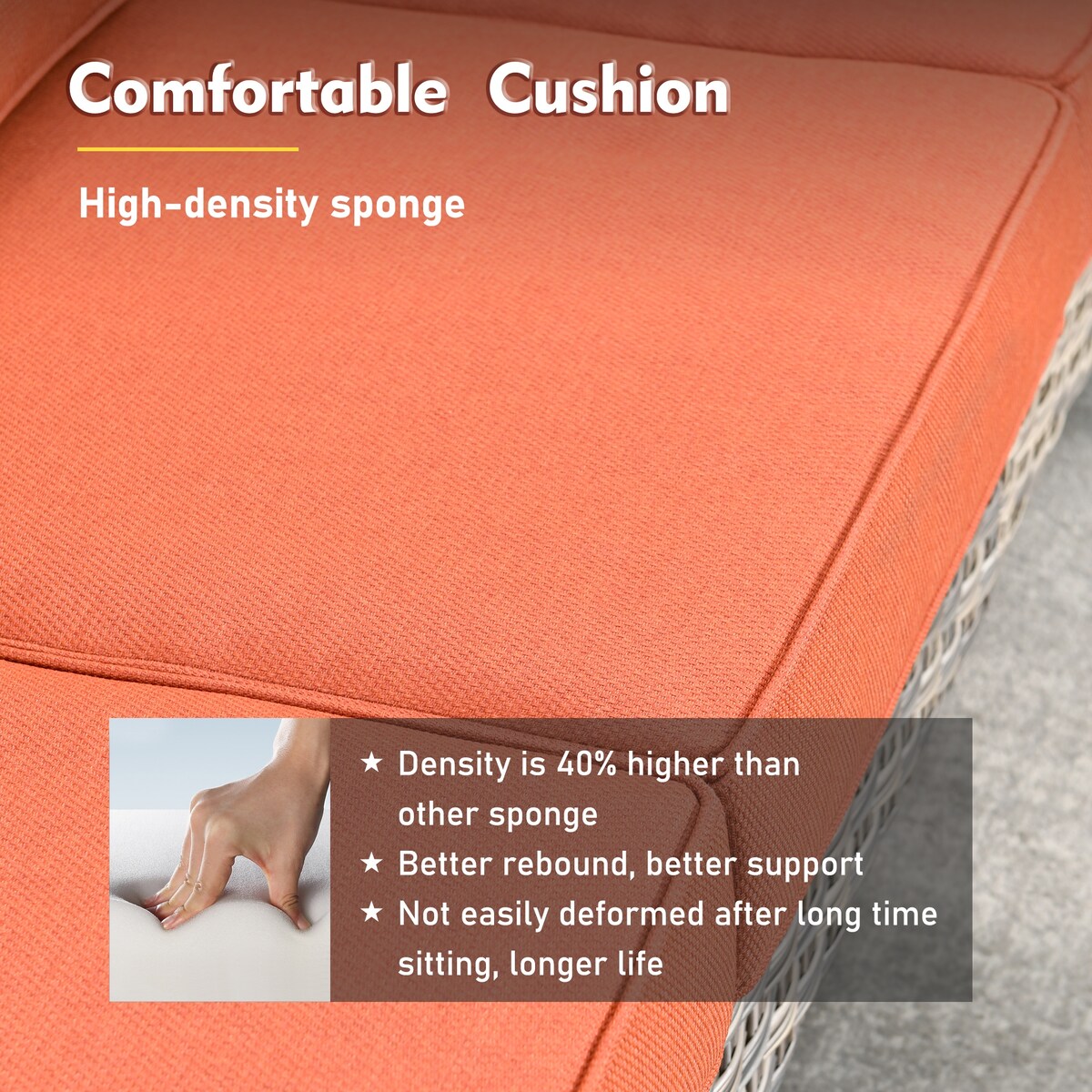 Enjoying your outdoor activity with XIZZI patio rattan conversation sofa set with fire pit table . UV-resistant and all weather handwoven PE wicker is designed for outdoor use. High quality yarn-dyed fabric wears well and is thicker, good texture and easy to clean. Ergonomic design chairs with high back and deep seat can support good posture and make you feel more comfortable. 42' wicker woven firepit can be used as dining table with the metal lid covered, and its good to place drinks, food and snacks. Ceramic firepit table top is easy to clean, more beautiful and heat-resisting.