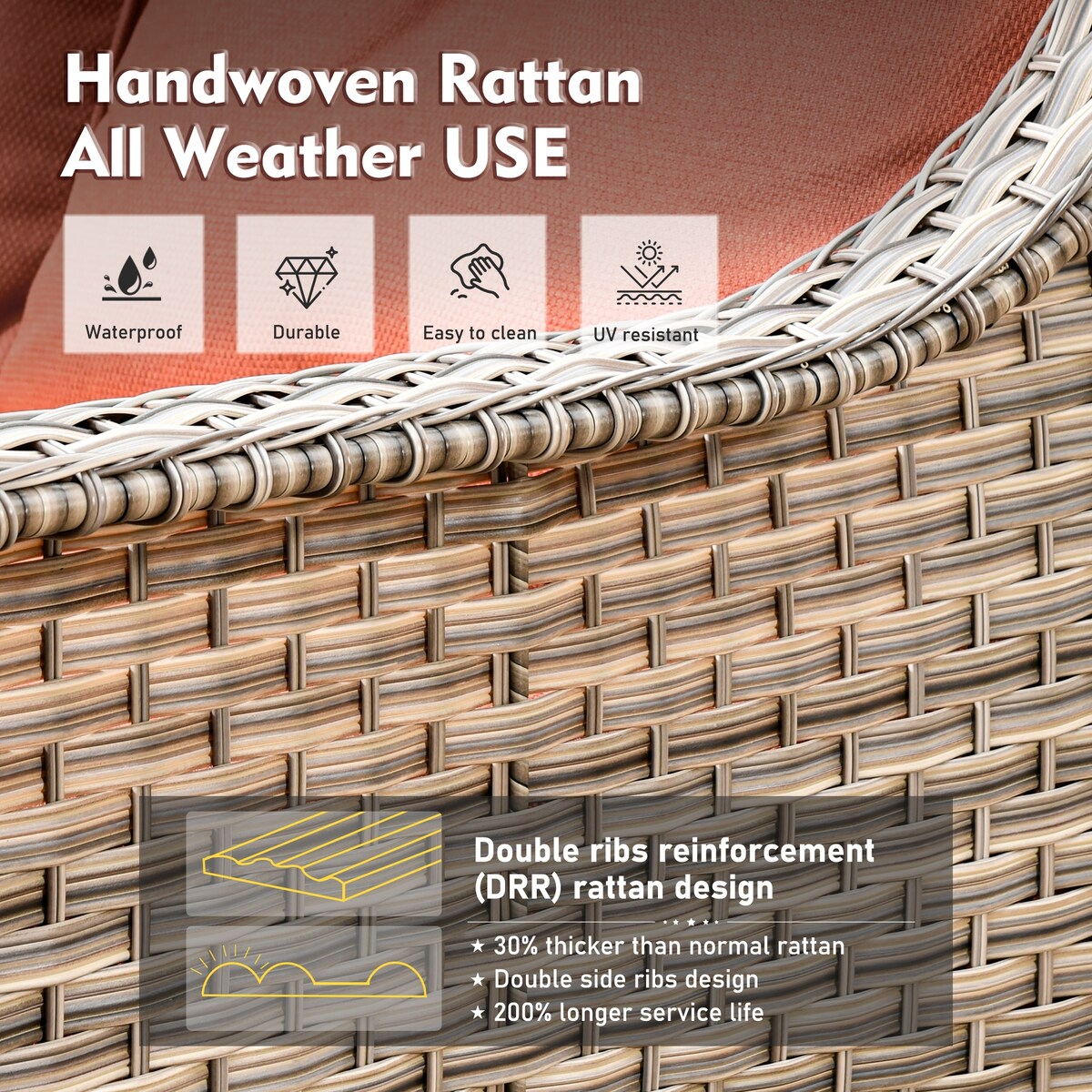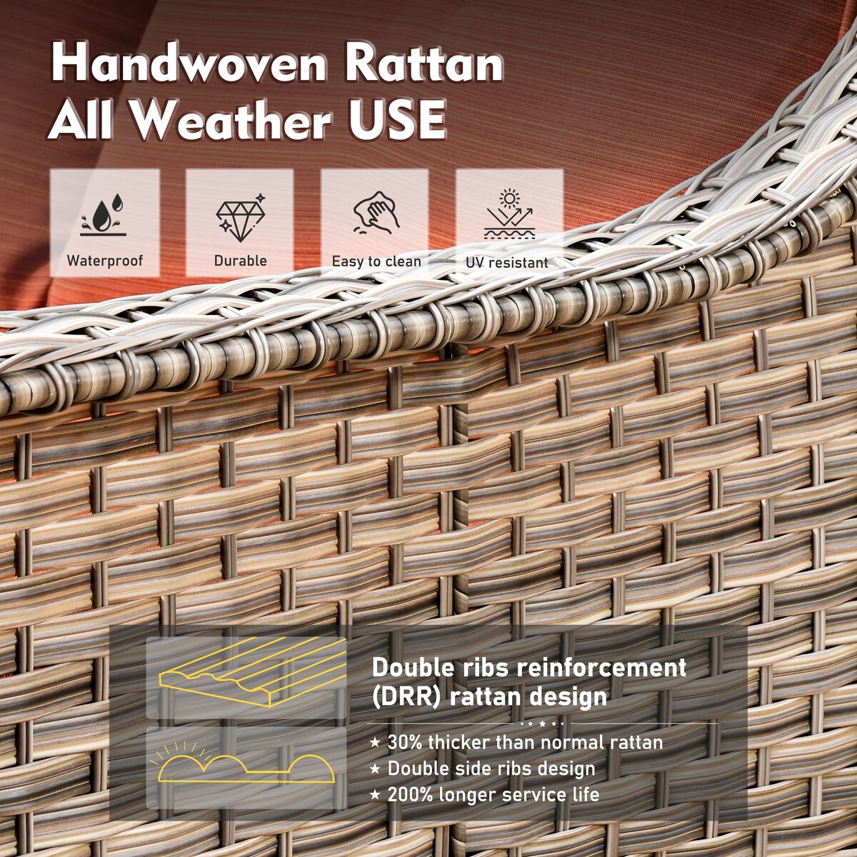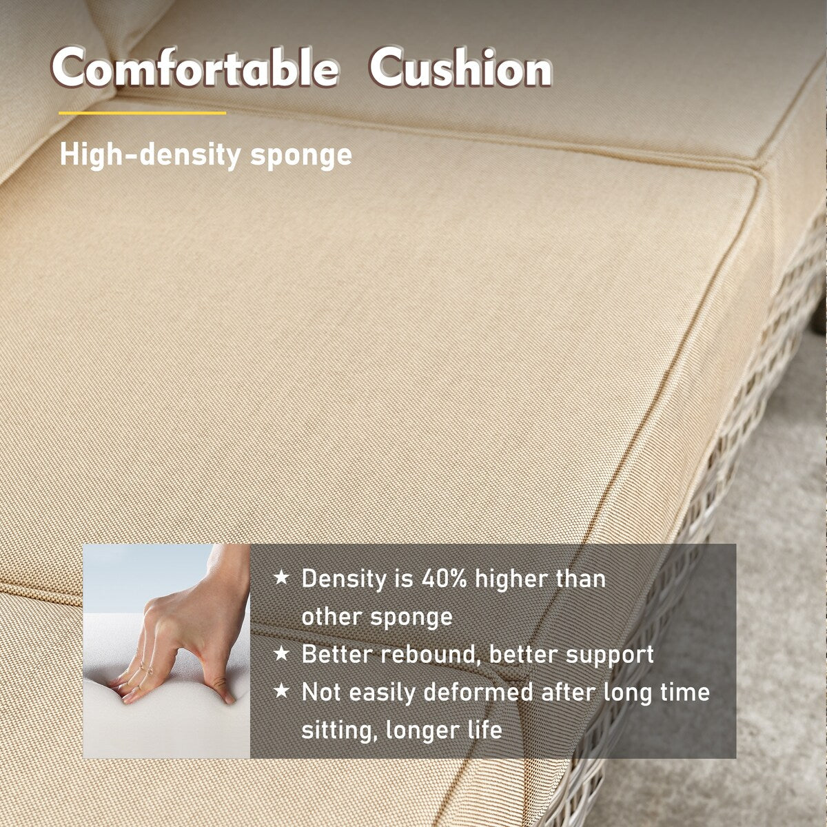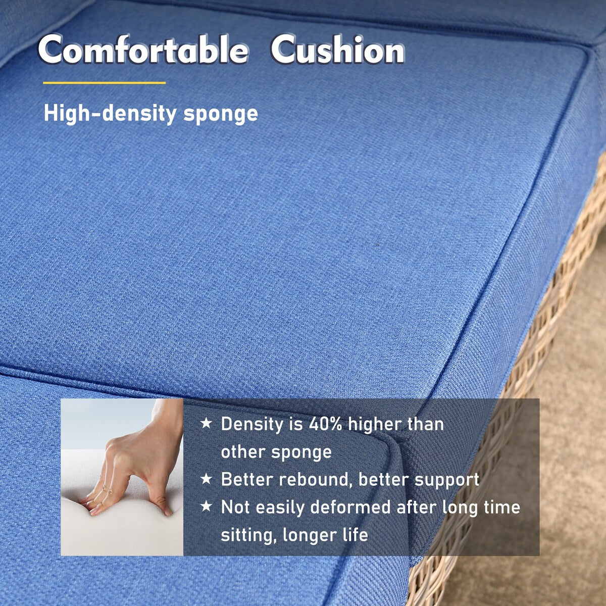 Enjoying your outdoor activity with XIZZI patio rattan conversation sofa set with fire pit table . UV-resistant and all weather handwoven PE wicker is designed for outdoor use. High quality yarn-dyed fabric wears well and is thicker, good texture and easy to clean. Ergonomic design chairs with high back and deep seat can support good posture and make you feel more comfortable. 42' wicker woven firepit can be used as dining table with the metal lid covered, and its good to place drinks, food and snacks. Ceramic firepit table top is easy to clean, more beautiful and heat-resisting.