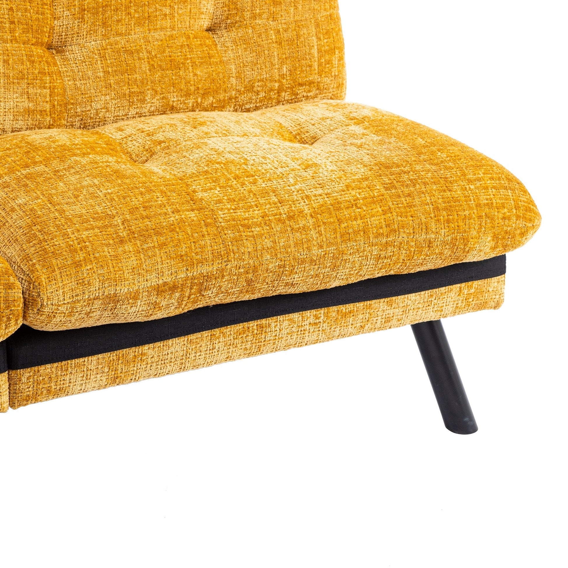 Yellow 75.6 Chenille Convertible Loveseat Futon Sofa Bed with Metal Legs for Living Room