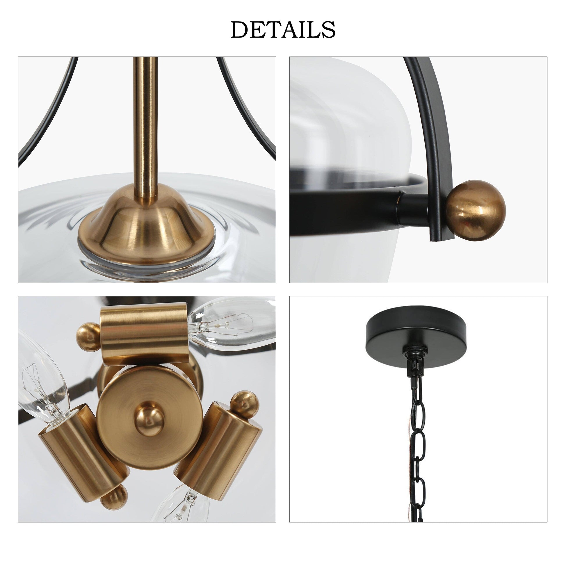 Illuminate your space with the charming elegance of this exquisite chandelier. The design features a bowl-shaped clear glass shade that beautifully diffuses light, creating a bright and inviting ambiance. The combination of black and plating brass finishes adds a modern touch, seamlessly blending with various decor styles. This stunning pendant light not only enhances the aesthetic appeal of your home but also provides a warm and cozy atmosphere, making it an ideal addition to your dining room, kitchen island, entryway, or living room.